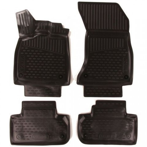 Koberce jsou vyrobeny přesně podle tvaru podlahových ploch konkrétního typu vozidla. Koberce jsou snadno omyvatelné, s rychlou možností vysypání nečistot a snadnou instalací. Vysoce odolná pryž zajišťuje kobercům vysokou pružnost, která zabezpečí při ohýbání (např. při skladování), že se koberce roztáhnou opět do původního tvaru. Výhodou těchto koberců je zvýšený okraj, chránící interiér interiéru vozidla před vysypáním sypkých materiálů či vylitím tekutin, apod. do interiéru vozidla, s odolností vůči prosáknutí olejů, benzínu a částečně také vůči elektrolytu z akumulátorů. Nepříjemnému posunu koberců po podlaze vozidla či shrnování pod pedály účinně zamezí speciální protiskluzové tvarování na spodní straně koberců, které se snadno přichytí k originálnímu čalounění podlahových prostorů.3D Gumové koberce AUDI Q5, 2017, SUV, Evropa SIXTOL
