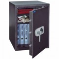 Nábytkový trezor s elektronickým zámkem, číselnou klávesnicí a páčkou k otevření. Uživatelský kód může obsahovat 3-8 číslic, tzn. až 100 000 000 kombinací kódů. Časová blokace zámku po 3 chybných pokusech. Indikace nízkého stavu baterie. Možnost ukotvení do zdi, nebo podlahy. Plastová ovládací páčka. Vnitřní prostor můžete policemi rozdělit přibližně na třetiny (platí pro 11230087MR). Police nejsou výškově stavitelné, ale vyjmutelné.Nábytkové trezory s elektronickým zámkem, číselnou klávesnicí a páčkou k otevření