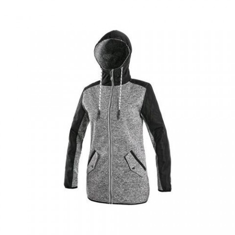 Dámská bunda z pleteniny, prodloužená, kombinace materiálů, kapuce napevno, zapínaní na zip, rukávy zakončeny gumičkou, 2 boční kapsy. Velikost: XS-3XLBunda CXS CAPE, dámská, šedo-černá