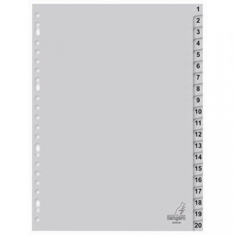 Rozdružovače s číslovanými záložkami v různých barvách. Jednostranný černý tisk.Číselné rozdružovače Kangaro A4