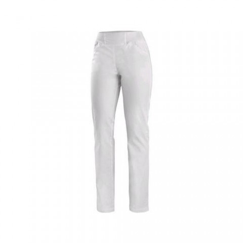 Dámské pohodlné kalhoty s pasem z žebrové pruženky, 2 přední prostorné klínové kapsy, 2 zadní našité kapsy. Doporučené použití: soukromé ordinace, kliniky a velká zdravotnická zařízení, záchranné a zdravotní dopravní služby, lázeňská zařízení Velikost: 36-60 Svrchní materiál: 64 % polyester 33 % bavlna 3 % elastan (Spandex) Barevnost: BíláDámské kalhoty CXS IRIS bílé