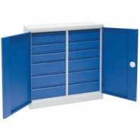 Dílenská skříň je vhodná pro uložení pracovních nástrojů a pomůcek. Skříň je vybavena dvanácti zásuvkami s výškou 87, 109 a 155 mm. Zásuvky jsou umístěny na kuličkových výsuvech. Vyrobena z plechu tl. 0,9 mm.Dílenská skříň na nářadí Manutan Expert, 100 x 100 x 45 cm
