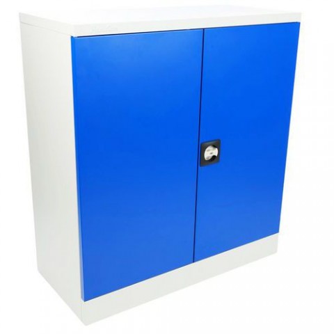 Nízká dílenská skříň na nářadí je vybavena dvěma policemi a je vhodná pro použití ve skladu či dílně. Dveře jsou vybaveny tlumiči nárazů a jsou uzamykatelné. Dodáváno v demontovaném stavu.Dílenská skříň na nářadí, 100 x 91,5 x 42,1 cm - Manutan Expert