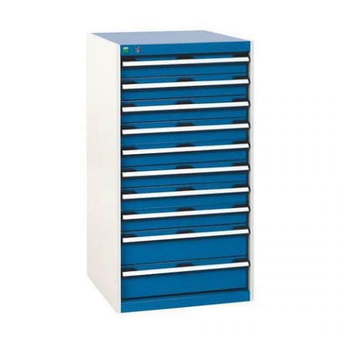 Dílenská skříň se zásuvkami slouží pro uložení nářadí, nástrojů a materiálu na pracovištích. Robustní konstrukce z ocelového plechu s povrchovou úpravou práškovým lakem. Zásuvky na teleskopických pojezdech se 100% výsuvem. Madla s možností umístění štítků, centrální zamykání zásuvek.Dílenská zásuvková skříň Bott SL-66, výška 120 cm