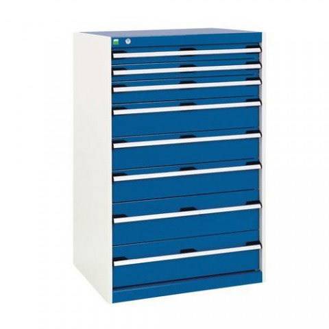 Dílenská skříň se zásuvkami slouží pro uložení nářadí, nástrojů a materiálu na pracovištích. Robustní konstrukce z ocelového plechu s povrchovou úpravou práškovým lakem. Zásuvky na teleskopických pojezdech se 100% výsuvem.Dílenská zásuvková skříň Bott SL-86, 8 zásuvek