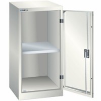 Ochrana proti prachu, kapalinám a mechanickému opotřebení díky uzavřenému rámu s povrchem odolným proti nárazům a oděru. Plné plechové dveře jsou zamykatelné díky bezpečnostního zámku. Možnost nastavení výšky polic. Nosnost police 60 kg.Dílenské skříně LISTA s policemi, 500x400x1000mm, 1 nebo 2 police