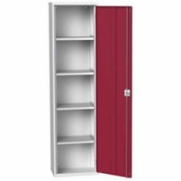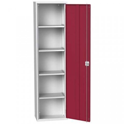 Kovové dílenské skříně s policemi pro efektivní využití v provozech a dílnách. Pozinkované police výškově nastavitelné v rastru 25 mm. Zásuvky uloženy na válečkových ložiskách se 100% výsuvem. Svařovaná ocelová konstrukce, povrchová úprava práškovým lakem. Vyztužené křídlové dveře s tříbodovým cylindrickým rozvorovým zámkem se dvěma klíči.Dílenské skříně policové jednodvéřové Bott Verso, výška 200 cm