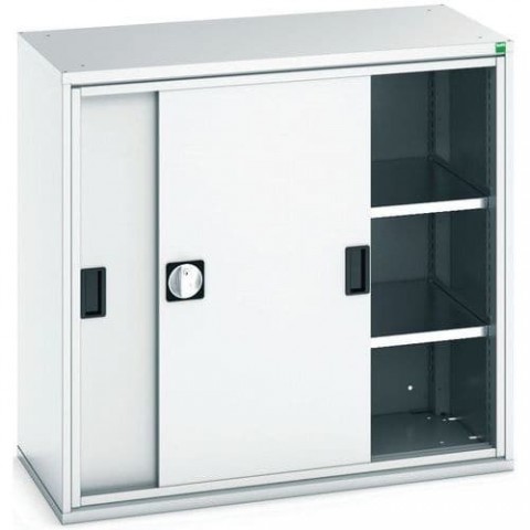 Kovové dílenské skříně s posuvnými dveřmi jsou vhodné do míst s omezeným prostorem. Posuvné dveře včetně madel a zámku. Pozinkované police s nosností 75 kg, výškově nastavitelné v rastru 25 mm. Svařovaná ocelová konstrukce, povrchová úprava práškovým lakem.Dílenské skříně s posuvnými dveřmi Bott Verso, výška 100 cm