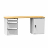 Pracovní stoly KOMBI jsou nejžádanější sestavy stolů kombinovaných ze stavebnicových nábytkových dílů. Pracovní stoly nabízíme v předdefinovaních sestavách pro každý typ v několika šířkách i hloubkách. KOMBI stoly se sestavují z pracovní desky, nohy pracovního stolu (nabízíme několik variant) nebo zásuvkové skříně, které mohou být na obou stranách stolu. Nohy je možné opatřit kolečky nebo elektro vybavením. Pracovní prostor mnohonásobně rozšíříte díky nástavbě pracovního stolu a širokému příslušenství.Dílenské stoly KOMBI LB5715, 1500 x 700 x 890 mm, BUK