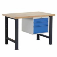 Dílenský stůl Weld ve dvou barevných variantách složený z pracovní desky, pevného podnoží a kontejneru s třemi zásuvkami. Stůl je stabilní a vyhovuje i náročnějším pracovním úkolům díky robustnímu provedení podnoží, vyšší váze bukové spárovky. Pracovní deska 120 x 80 cm z bukové spárovky tl. 4 mcm, sražené hrany, bez povrchové úpravy. Maximální nosnost pracovní desky při rovnoměrném zatížení 500 kg. Svařovaný podstavný kontejner v x š x h: 47 x 51 x 59 cm, celková nosnost 40 kg, výsuv 100%, kuličková ložiska pojezdů. Podstavný kontejner uzamykatelný cylindrickým zámkem se dvěma klíči, horní dvě zásuvky včetně dělicích příček. Pevné podnoží z ocelového U - profilu 50 x 70 cm, tl. 3mm a ocelových plechů tl. 0,8 mm. Desku doporučujeme impregnovat speciálním olejem, především pokud je stůl umístěn ve vlhkém prostředí.Dílenské stoly Weld, 84 x 120 x 80 cm