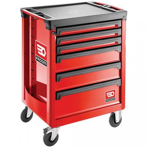 ROLL M3 6zásuvkový vozík na nářadí se statickou nosností 800 kg. Pracovní plocha z polypropylenu vyztuženého skelnými vlákny pro vyšší odolnost proti nárazu. Dvě integrovaná madla s měkkým potahem z dvojího materiálu pro snadné přemisťování vozíku a jeho zvedání přes překážky. Výklopné polypropylenové čelo zásuvky s bezpečnostními háčky, nehrozí nebezpečí otevření za pohybu.Dílenské vozíky na nářadí ROLL M3, 6 zásuvek