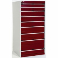 Zásuvkové skříně Bott Cubio se zásuvkami s nosností 75 kg a 100% výsuvy na válečkových ložiskách. Robustní svařovaná ocelová konstrukce s nosností až 1,5 tuny, povrchová úprava práškovým lakem. Systém centrálního zámku i blokace otevřen?? více zásuvek najednou. Ergonomické rukojeti s popisovatelnou lištou, uzamykání cylindrickým zámkem se dvěma klíči.Dílenské zásuvkové skříně Bott Cubio, 160 x 80 x 52,5-75 cm, 9 zásuvek