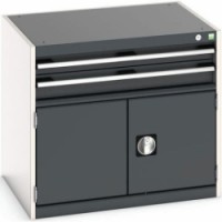 Zásuvkové skříně Bott Cubio se zásuvkami s nosností 75 kg a 100% výsuvy na válečkových ložiskách. Dvířka skříňky s perforovanou vnitřní stranou pro uložení nářadí. Robustní svařovaná ocelová konstrukce s nosností až 1,5 tuny, povrchová úprava práškovým lakem. Systém centrálního zámku i blokace otevření více zásuvek najednou. Ergonomické rukojeti s popisovatelnou lištou, uzamykání cylindrickým zámkem se dvěma klíči.Dílenské zásuvkové skříně Bott Cubio, 70 x 80 x 52,5-75 cm, 2 zásuvky, 1 skříňka