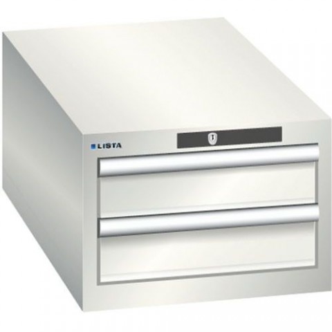 Dílenské zásuvkové skříňe Lista, 2 nebo 3 zásuvky. Zámek na klíč. Cylindrické vložka zámku. Optimální využití díky plnému výsuvu a optimální výšce čela zásuvek. Vynikající ochrana proti prachu, kapalinám a mechanickému opotřebení díky uzavřenému rámu s povrchem odolným proti nárazům a oděru. Systém proti převrátcení, který zabraňuje pádu zásuvky, a individuální zamykání zásuvek. Ochrana proti korozi elektroforetickým imerzním lakováním a stříkáním. Optimalizované úložné prostory a organizace díky dělicímu materiálu LISTA přizpůsobenému každému použití a zásuvkám vybaveným drážkami a perforacemi. Profesionální popisování s popisovacím softwarem LISTA Script a výklopnou úchytkou pro vkládání štítků. Dokonale tichý pohyb díky saně bez příčníku.Dílenské zásuvkové skříně Lista, 2 nebo 3 zásuvky, 411x725x283 mm