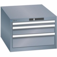 Ochrana proti prachu, kapalinám díky uzavřenému rámu s povrchem odolným proti nárazům a oděru. Bezpečnostní pojistka zabraňující pádu a individuálnímu zamykaní zásuvek (ochrana proti převrácení). Ochrana proti korozi pomocí elektroforetického imerzního lakování a stříkání. Profesionální označování pomocí softwaru pro označování LISTA Script a výklopné úchytky pro vkládání štítků. Dokonale tichý pohyb díky saně bez příčníku.Dílenské zásuvkové skříně LISTA, 3 zásuvky, 564x725x383mm