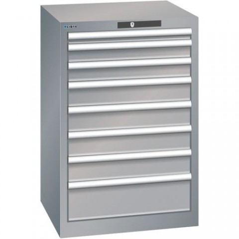 Optimální využití díky plnému výsuvu a optimální výšce čela zásuvek. Zámek na klíč. Vynikající ochrana proti prachu, kapalinám a mechanickému opotřebení díky uzavřenému rámu s povrchem odolným proti nárazům a oděru. Systém proti převrátcení, který zabraňuje pádu zásuvky, a individuální zamykání zásuvek.Ochrana proti korozi elektroforetickým imerzním lakováním a stříkáním. Optimalizované úložné prostory a organizace díky dělicímu materiálu LISTA přizpůsobenému každému použití a zásuvkám vybaveným drážkami a perforacemi. Profesionální popisování s popisovacím softwarem LISTA Script a výklopnou úchytkou pro vkládání ??títků. Dokonale tichý pohyb díky saně bez příčníku.Dílenské zásuvkové skříně Lista, 4 až 8 zásuvek, 564x572x850mm