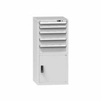 Zásuvkové skříně jsou vyráběny z kvalitních ocelových plechů. Součástí je mechanismus centrálního zamykání a blokace zásuvek. Standardně jsou zásuvkové skříně osazeny cylindrickými zámky a ke každému zámku jsou dodávány dva klíče. Skříňka je opatřena jednou vnitřní policí a dvířkami o rozměrech 550 mm. K dostání ve 3 barevných variantách - modrá, tmavě modrá, šedá.Dílenské zásuvkové skříně ZA, 1215 x 578 x 600 mm, 5 zásuvek, 1 skříňka, šedá
