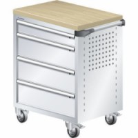 Dílenské zásuvkové vozíky LISTA, pracovní deska z multiplexní dýhy, 4 zásuvky Vybaven robustní dřevěnou deskou z multiplexní dýhy - 40mm, která je odolná a vhodná pro montáž svěráku Centrální zamykání KEY LOCK - vyměnitelné cylindrické vložky Pojistka, která brání samovolnému otevírání zásuvek Nosnost zásuvky 40kgDílenské zásuvkové vozíky LISTA, pracovní deska z multiplexní dýhy, 4 zásuvky