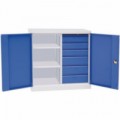 Kovový pracovní stůl s výškou 85 cm je vhodný do dílen, skladů či jiných montážních prostor. Ponk je opatřen dřevěnou pracovní deskou a kovovou konstrukcí. Součástí pracovního stolu je horní police šířky 20 cm a jeden kontejner se třemi zásuvkami. Kontejner je uzamykatelný cylindrickým zámkem na klíč. Stůl je dodáván v rozloženém stavu, kontejnery jsou zkompletovány. Rozměry kontejneru jsou 32,5 x 44 x 64 cm.Dílenský stůl Asse, 85 x 150 x 70 cm