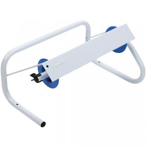 Nástěnný držák na role papírových průmyslových utěrek. Opatřen ozubeným nožem (35 x 5 cm) pro snadné odtrhávání. Nosná tyč (33 cm) je opatřená plastovými kužely pro stabilitu role. Držák je vhodný pro role s maximálním průměrem 26 cm. Ošetřeno práškovou bílou barvou.Držák na průmyslové utěrky Manutan Expert