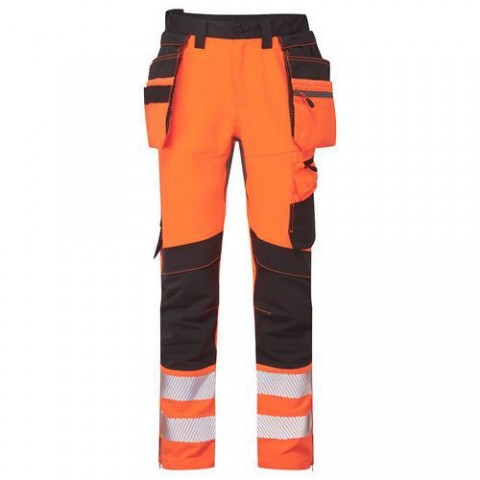 Vysoce viditelné řemeslné kalhoty DX4 využívají cílené umístění dynamických 4směrně strečových tkanin, které poskytují maximální rozsah pohybu při práci. Kalhoty mají vzadu vysoký pas s boční elastickou úpravou, která zajišťuje ochranu ve všech pracovních polohách. Předem zahnuté nastavitelné kapsy na kolena, velkorysé přední kapsy a multifunkční stehenní kapsy na zip nabízejí bezpečné uložení. Trojité prošití v celé délce pro maximální odolnost. 4cestný stretchový materiál pro volnost pohybu a zvýšené pohodlí Texpel™ Stain Eco, prvotřídní povrchová úprava odolná proti skvrnám, která odpuzuje nečistoty a vodu Roztažitený stretchový klín poskytuje maximální flexibilitu Zadní průduch pro prodyšnost a pohodlí Trojité švy pro extra pevnost Postranní zip na nohavici pro snadný přístup Víceúčelové kapsy Zpevněné boční kapsy s postranním vstupem Postranní stehenní kapsa na zip Snadný přístup cargo kapsy Dvě zadní kapsy Dvojitá kapsa na metr Smyčka na kladivo pro bezpečné uložení pracovních náDX4 Hi-Vis kalhoty Craft, černá/oranžová