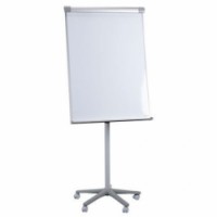 Magnetická tabule s nastavitelnou výškou a úhlem tabule. Svorka pro připevnění papírů. Stabilní pojízdná základna s pěti aretačními kolečky. Polička pro odložení fixů po celé délce.Flipchart Manutan Expert Sky, magnetický, mobilní