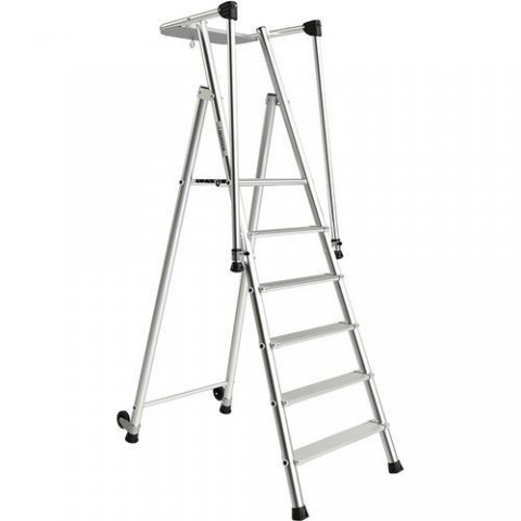 Vysoce bezpečné hliníkové žebříky pro ultraintenzivní použití. Velká protiskluzová platforma s 3stranným zábradlím. Stojky z kruhových trubek o průměru 50 mm, extrémně tuhé a odolné. Široká plošina 390 x 382 mm. Široké, 100 mm protiskluzové rýhované schůdky. Žebřík s integrovanou a skládací dvojitou rampou. Antirotační díly koncovek z hliníkové slitiny. Součástí je široký hliníkový držák nářadí a dvě pojezdová kolečka.Hliníkové schůdky Magnum 3 Tubesca-Comabi
