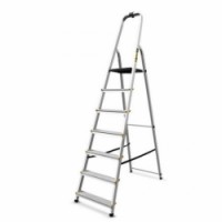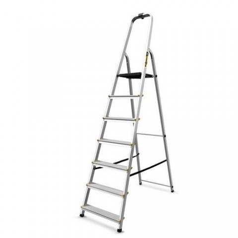 Univerzální hliníkové schůdky s jednostranným vstupem, vhodné do domácnosti, skladů nebo archívů. Protiskluzový rýhovaný povrch stupňů, zvdálenost mezi stupni je 23 cm. Opatřené ochrannými protiskluzovými patkami. Splňují normu ČSN EN 131 a mají TÜV certifikát.Hliníkové schůdky Star BY, 7 stupňů