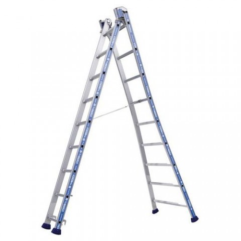 Hliníkové 2-cestné kombinované žebříky Platinum 300 Pro. Díky své roztažené základně a patentovanému kloubovému spojování Quickstep zaručuje pevnost, flexibilitu a bezpečnost pro všechny uživatele. Pohodlné vedení s nerezovou hliníkovou skluzavkou a integrovanou protiskluzovou podložkou. Pro práci na rovných plochách a schodištích. Modely testovány pro odolnost vůči nejnáročnějším profesionálním požadavkům. Zesílené vzpřímené sloupky pro větší stabilitu a životnost. Protiskluzové nášlapné podložky, jejichž značná tloušťka zajišťuje maximální bezpečnost.Hliníkové žebříky Platinum 300 Pro Tubesca-Comabi