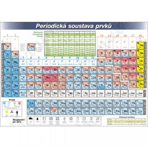 Bezpečnostní značky, tabulky nebo samolepky "Periodická tabulka prvků" splňují požadavky právních a technických předpisů, zejména Nařízení vlády č. 375/2017 Sb., ČSN ISO 3864-1, ČSN ISO 3864-2, ČSN ISO 3864-3, ČSN ISO 3864-4.Informační tabulky - Periodická tabulka prvků