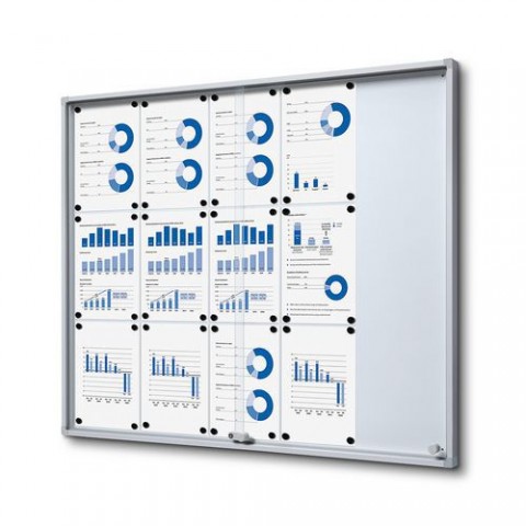 Vitrína SCSLR se zasouvacími dveřmi zajistí bezpečné a přehledné zobrazení informací. Bezpečnostní rohy a posuvné sklo podporují pohodlnou manipulaci. Certifikace B1 zaručuje bezpečné použití ve veřejných budovách. Skvělé řešení pro školy, kanceláře a chodby.Interiérová uzamykatelná vitrína Slim s posuvnými skleněnými dveřmi a bezpečnostními rohy