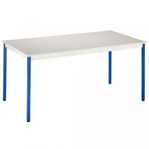 Víceúčelový stůl obdélníkového tvaru je vhodný do kanceláří, jídelen a jiných společných prostor. Konstrukce je vyrobena z oceli, desku stolu tvoří dřevotříska v šedé barvě. dezén desky: šedá rozměry desky d x h: 150 x 75 cm výška stolu: 74 cm provedení: rovné materiál desky: laminovaná dřevotříska, tl. 19 mm materiál podnoží: ocel barva podnoží: modrá 3 mm ABS hrana, dodáváno v demontovaném stavuJednací stůl Alex, 150 x 75 x 74 cm, rovné provedení