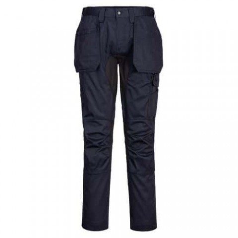 Odolná směsová tkanina umožňuje jak vysoký výkon při práci s maximálním rozsahem, tak pohodlí. Strečový materiál umožňuje snadný pohyb. Mezi chytré funkce patří multifunkční kapsy pouzdra, kapsy na kolena s horním plněním a snadno přístupná vícecestná stehenní kapsa pro bezpečné uložení telefonu, klíčů a nástrojů. K výrobě tohoto produktu je recyklováno 31 PET lahví Inovativní řešení v oblasti klíčových pohybů poskytuje vynikající komfort a flexibilitu Kapsy na kolenou s elastickými panely pro snadný pohyb 10 kapes pro dostatek uložení Odolná směsová tkanina pro vysoký výkon a maximální pohodlí uživatele Kapsa na metr Smyčka na kladivo pro bezpečné uložení pracovních nástrojů Kapsy na kolenní chrániče Snadný přístup cargo kapsy Kapsa na mobil Boční elastický pas pro maximální pohodlí nositele Tkanina s hodnocením UPF 40 k blokování 98% UV paprsků Nový vzhled Slim fit pro výjimečné pohodlí CE certifikace Označeno UKCAKalhoty WX2 Stretch Holster, černá/modrá