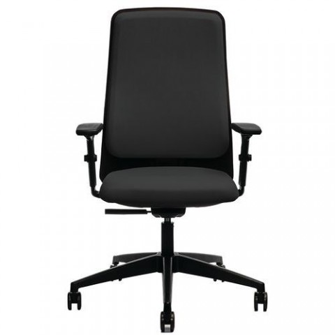 Kancelářská židle s polstrovaným sedákem a opěradlem. Synchronní mechanismus. Individuální nastavení hloubky sedáku se sklonem přibližně 5°.Kancelářská židle Interstuhl 152II, černá