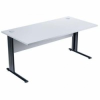 Kancelářské stoly ve světle šedém provedení s deskou z melaminových panelů o tloušťce 25 mm. Antireflexní úprava proti poškrábání s antibakteriálními vlastnostmi. Otvor v pracovní desce o průměru 80 mm pro vedení kabelů. Kovové nohy jsou vybavené odnímatelnými kryty pro vedení kabelů. Dodáváno v nesmontovaném stavu.Kancelářské stoly Manutan Expert, 72 x 80 - 180 x 80 cm, světle šedá