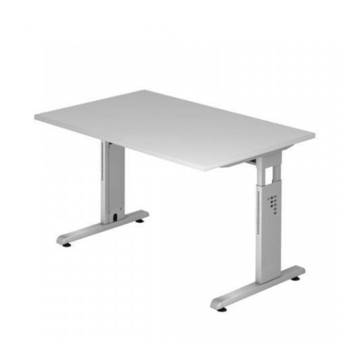 Výškově nastavitelný stůl ve světle šedé barvě. Nosná vzpěra pod deskou stolu slouží i jako kabelové vedení. barva desky: světle šedá rozměry desky d x h: 120 x 80 cm výška stolu: 65 - 85 cm (stavitelná) provedení: rovné materiál desky: laminovaná dřevotříska, tl. 25 mm materiál podnoží: kov barva podnoží: stříbrná RAL 9006 2mm ABS hrana, vyrovnávací šrouby, dodáváno v demontovaném stavu (spojovací materiál součástí balen??)Kancelářský stůl Baron Minos, 120 x 80 x 65 - 85 cm, rovné provedení