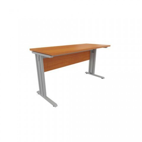 Stůl v dezénu třešně je vybaven kovovým kabelovým vedením na spodní straně desky a v nohách stolu. Stůl může sloužit i jako přístavba. dezén desky: třešeň rozměry desky d x h: 140 x 60 cm výška stolu: 75 cm provedení: rovné materiál desky: dřevotříska, tl. 25 mm materiál podnoží: kov barva podnoží: stříbrná RAL 9006 2mm ABS hrana, možnost vyrovnání šrouby, dodáváno v demontovaném stavu (spojovací materiál součástí balení)Kancelářský stůl Classic line, 140 x 60 x 75 cm, rovné provedení