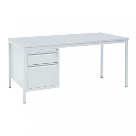 Kovový stůl s dvouzásuvkovým kontejnerem. Zásuvky lze plně vysunout. Rám z kovových profilů je povrchově upraven práškovou barvou. barva desky: světle šedá rozměry desky d x h: 160 x 80 cm výška stolu: 76 cm provedení: rovné materiál desky: laminovaná dřevotříska, tl. 18 mm materiál podnoží: ocelové trubky, tl. 1,5 mm barva kontejneru: světle šedá RAL 7035 barva podnoží: světle šedá RAL 7035 počet kontejnerů: 1 rozměry kontejneru v x š x h: 53 x 46,1 x 60 cm počet zásuvek kontejneru: 2 dodáváno v demontovaném stavu (spojovací materiál součástí balení) snadná montážKancelářský stůl s kontejnerem Basic, 160 x 80 x 76 cm, rovné provedení