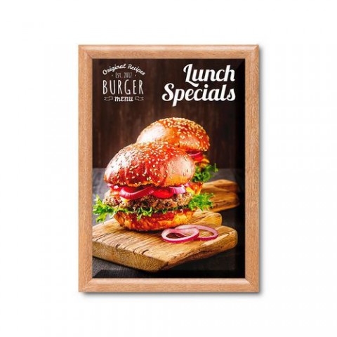 Elegantní rám typu snap zvýrazní každý plakát a dodá mu profesionální vzhled. Odolná hliníková konstrukce umožní rychlou výměnu obsahu bez sundání ze zdi. Čisté linie a volba mezi zkosenými či zaoblenými rohy podtrhnou moderní styl. Ideální pro restaurace, obchody, veřejné prostory i domácí dekorace.Klaprám ostrý roh 25 mm dřevěný dekor profilu