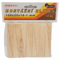 Klínky dřevěné, montážní, balení 14 ks, 100 x 25 x 16 – 1 mm