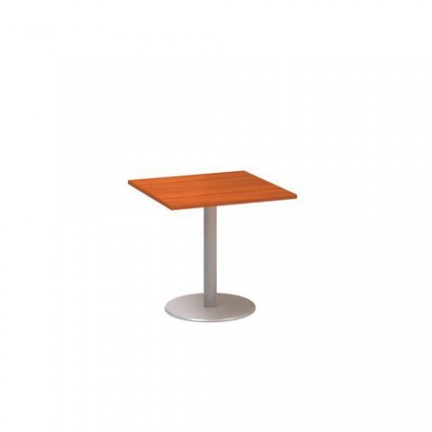 Konferenční stoly s kruhovým kovovým podnožím. Deska z laminované dřevotřísky tl. 25 mm je opatřena 2mm ABS hranami. Dezén desky z divoké hrušky, buku, třešně, ořechu nebo bílé barvy. Dodáváno v demontovaném stavu.Konferenční stoly Alfa 400, 80 x 80 x 74,2 cm