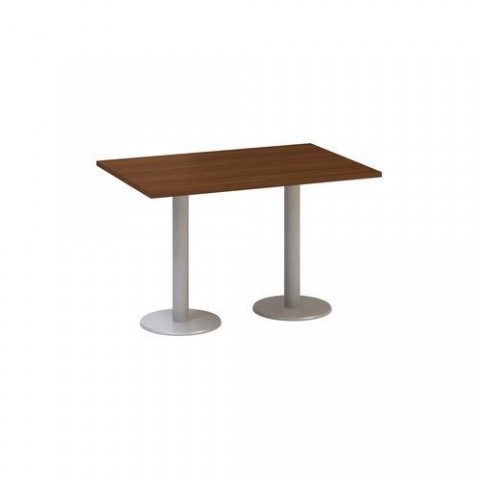 Jednací stoly Alfa 400 v pěti barevných provedeních. Konferenční stoly této řady systémově navazují na kancelářské stoly Alfa a doplňují je. Desky stolu jsou vyrobeny z laminované dřevotřísky tloušťky 25 mm s ABS hranou 2 mm. Podnoží v šedostříbrné barvě se skládá z kruhových ocelových desek a svislých nohou, které jsou v horní části opatřeny nosným křížem, zajišťujícím přímou podporu stolové desky. Díky povrchové úpravě epoxy-polyesterovou barvou se podnoží vyznačuje vysokou odolností proti všem druhům poškození v běžném kancelářském provozu. Konferenční stoly splňují normy ISO9001, ISO14001, ČSN18001, Ekologicky šetrný výrobek.Konferenční stoly Alfa 400 s šedým podnožím, 120 x 80 x 74,2 cm