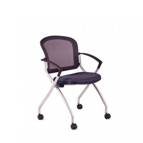 Konferenční židle s opěradlem ze samonosné síťoviny a integrovanými područkami. Pojezdová kolečka pro snadnou mobilitu. Po ukončení konference lze židle horizontálně stohovat. Maximální nosnost 120 kg.Konferenční židle Metis