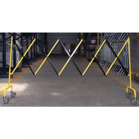Kovová zábrana díky své pružnosti a kolečkám se snadno složí/rozloží a přesouvá. Průměr trubky 25 mm. Hmotnost 8 kg. 4 kolečka s brzdou o průměru 80 mm.Kovová mobilní zábrana skládací Carla na kolečkách, délka max. 2850 mm, žlutá/černá