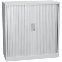 Skříň se dvěma stavitelnými policemi a plastovými roletami, které lze plně zasunout do stran. Možnost uzamknutí cylindrickým zámkem.Kovová skříň s roletou, 2 police, 105 x 100 x 45 cm