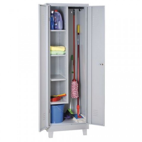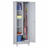 Úklidová uzamykatelná skříň ze svařovaného ocelového plechu. Uvnitř čtyři police a šatní tyč s třemi posuvnými háky. Možnost umístění štítku se jménem v horní části dveří. Účinné odvádění vlhkosti větracími otvory na dveřích.Kovová úklidová skříň, 190 x 60 x 50 cm - Manutan Expert