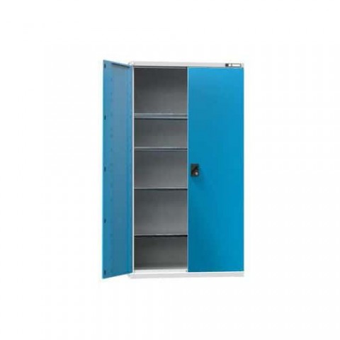 Dílenské skříně s křídlovými dveřmi s úhlem otevření 180°. Stabilní konstrukce z ocelových plechů. Skříň je vybavena čtyřmi policemi, které jsou nastavitelné v rastru 25 mm. Nosnost skříně je 600 kg.Kovové dílenské skříně na nářadí SK1, 1950 x 1044 x 625 mm, 4 police, šedá