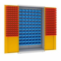 Těžké dílenské skříně pro ukládání nářadí a dílenského materiálu jsou konstruovány tak, aby vydržely nejnáročnější podmínky. Monolitická svařovaná konstrukce z oceli tl. 1 mm zajišťuje vysokou pevnost. Vhodné pro profesionální použití ve vnitřních suchých a větraných prostorách. Křídlové dveře s tříbodovým zámkem RONIS (dodáváno se 2 klíči). Vyrovnávací nožky, které jsou nastavitelné zevnitř. Posuvníky pro snadný pohyb skříně a ochranu podlahy. Pro vysokou bezpečnost lze přikotvit ke zdi. Před lakováním jsou skříně potaženy zirkoniovou vrstvou, která je chrání před korozí a zvyšuje přilnavost laku. Skříně jsou opatřené nátěrem, který má klasifikaci reakce na oheň: A2-s1, d0 dle norem PN-EN 13501-1:2019-02. Vyráběno v souladu s normami ISO:9001 a ISO:14001.Kovové dílenské skříně s boxy, 199 x 120 x 50 cm