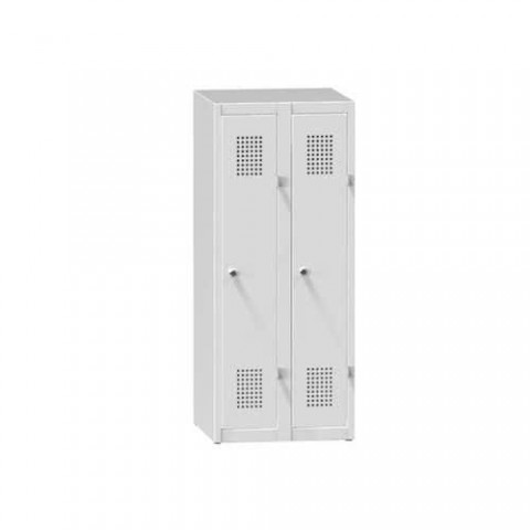 Základní provedení dostupné ve třech výškách – 1200, 1500 a 1850 mm. Variantami jsou skříně jednodvéřové, dvoudvéřové a třídvéřové. Šatníky jsou standardně vybaveny cylindrickým zámkem, dvěma klíči a třemi plastovými háčky. Plechová šatní skříň převážně pro mateřské školy a I. Stupěň ZŠ. Dveře jsou celoplošně vyztužené a pevné v krutu a ohybu. Dveře jsou zavěšeny na kovových pantech originální konstrukce s úhlem otevření 180°. Police ve spodní části skříňky. Cylindrický zámek se dvěma klíči.Kovové šatní skříně 2-dvířkové na soklu, 600 x 500 x 1200 mm