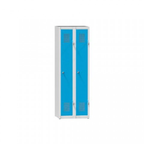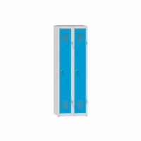 Základní provedení dostupné ve třech výškách – 1200, 1500 a 1850 mm. Variantami jsou skříně jednodvéřové, dvoudvéřové a třídvéřové. Šatníky jsou standardně vybaveny cylindrickým zámkem, dvěma klíči a třemi plastovými háčky. Plechová šatní skříň převážně pro základní školy. Dveře jsou celoplošně vyztužené a pevné v krutu a ohybu. Dveře jsou zavěšeny na kovových pantech originální konstrukce s úhlem otevření 180°. Police ve spodní části skříňky. Cylindrický zámek se dvěma klíči.Kovové šatní skříně 2-dvířkové na soklu, 600 x 500 x 1500 mm